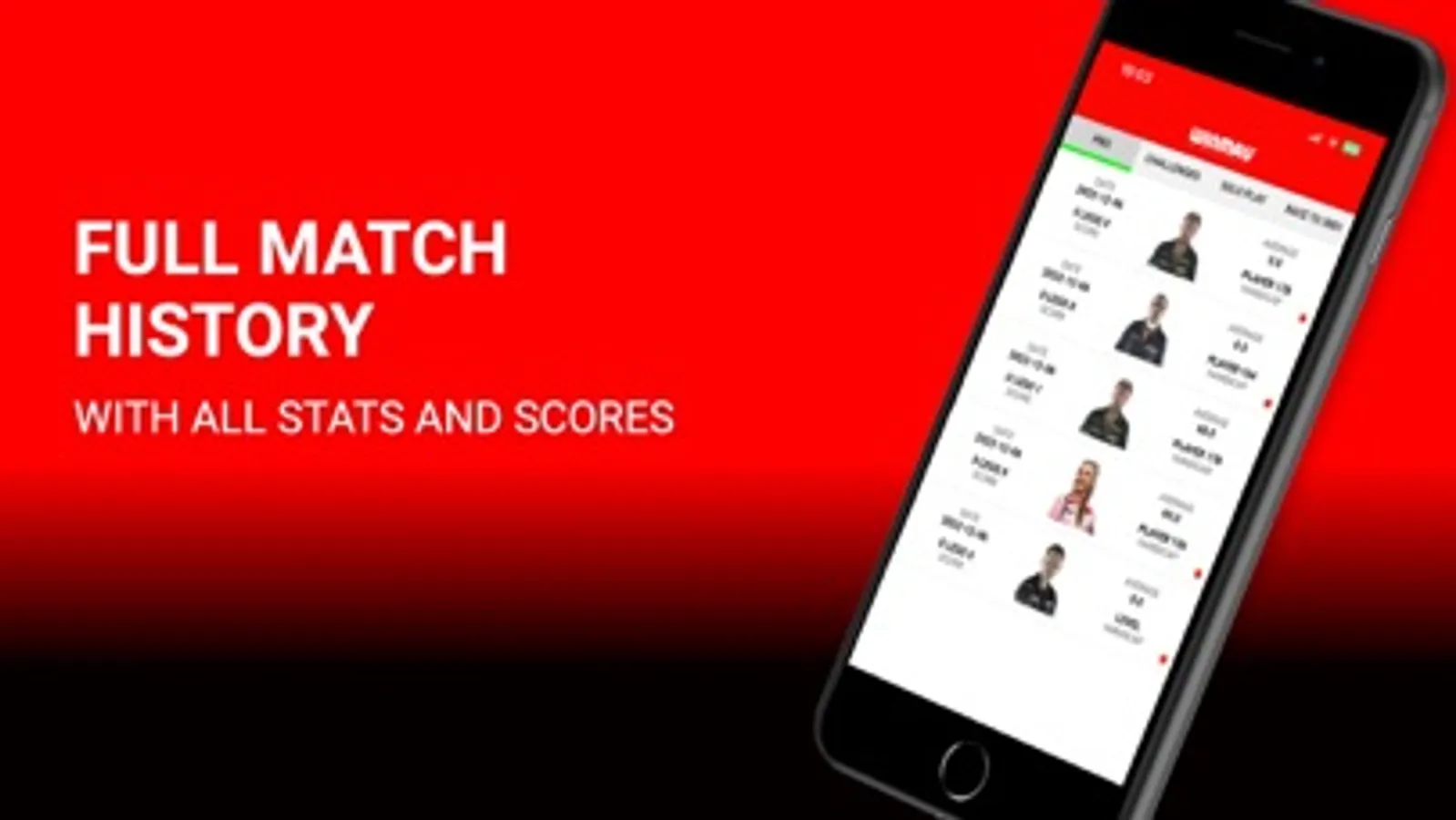 - Match Centre with scores and detailed stats including average, scoring average, best leg (darts thrown), highest checkout, highest throw, doubles hit, legs against throw and score counts (60's, 100's, 140's and 180's counts).