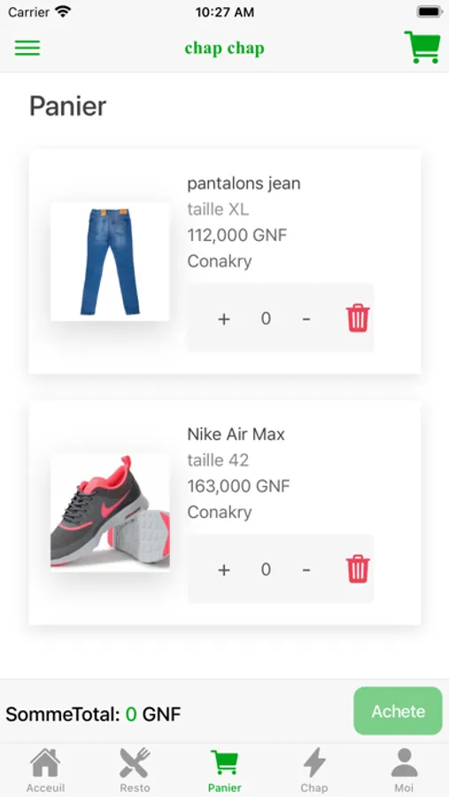 Chap Chap Guinée est une application de vente en ligne qui se charge de recenser les fournisseurs  pour que vous acheter  uniquement les produits qui ont passe par une étape de vérification ,donc faite vos achats sans vous souciez de la qualité du produit .