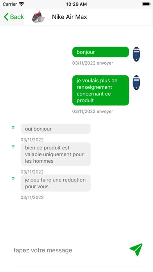 Communication : Avec Chap Chap vous avez la possibilité d'échanger avec le fournisseur concernant un produit et pourquoi même pas avoir une réduction