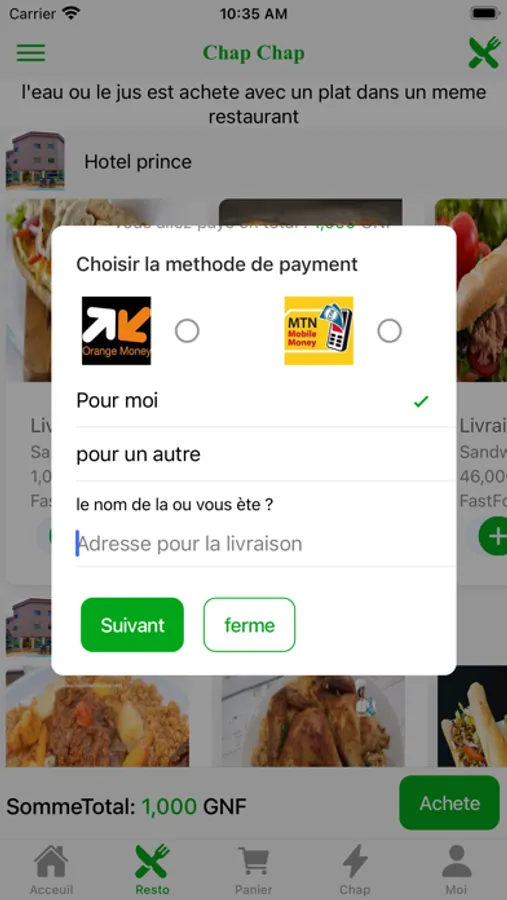 Payez Chap soyez livré Chap en Guinée