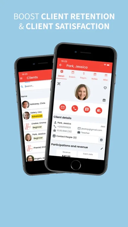 - Client Management: Keep track of your clients' contact information, fitness progress, and session history in one organized space.