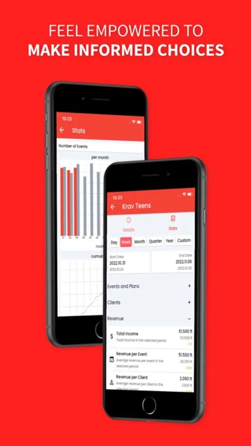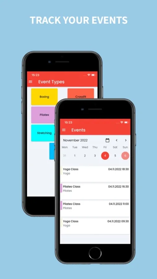 - Event Management: Easily create, modify, and track events, group classes, and personal training sessions with an intuitive calendar view.