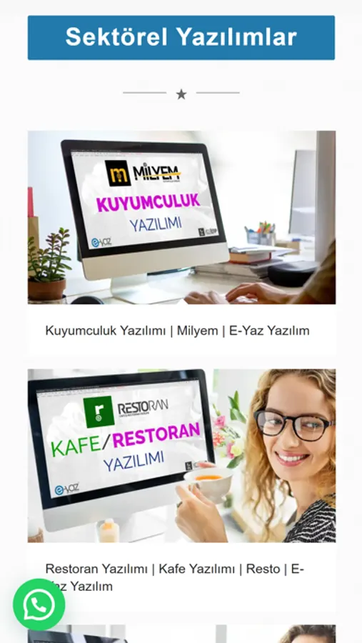 E-Yaz Yazılım, ticari faaliyet gösteren işletmelerin ihtiyacı olan Stok ve Depo Yönetim, Finans Yönetimi, Teklif ve Sipariş Yönetimi, Üretim Planlama ve Kontrolü, İnsan Kaynakları Yönetimi, Kalite Yönetimi, Proje Yönetimi ve CRM gibi ERP Yazılımı bileşenlerini içeren başlıkları üzerinde yazılım üretimine başlamıştır.