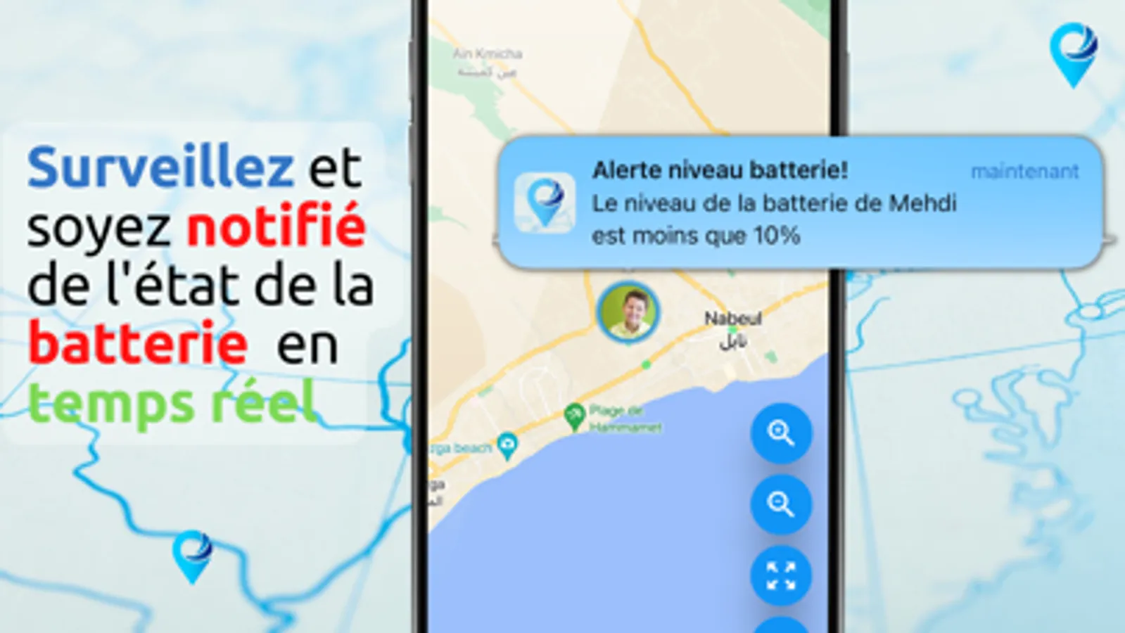 - Surveillez le niveau de batterie de vos proches et soyez notifié lorsque la charge est faible
