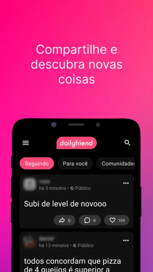 - Comunidades: crie ou participe de comunidades incríveis e engaje em discussões saudáveis.