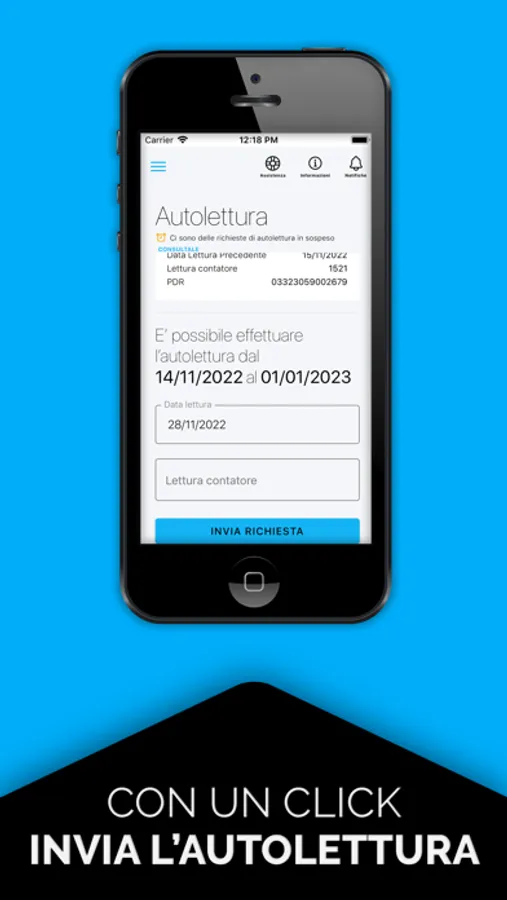 • Inviare comodamente l'autolettura dal proprio iPhone e iPad;