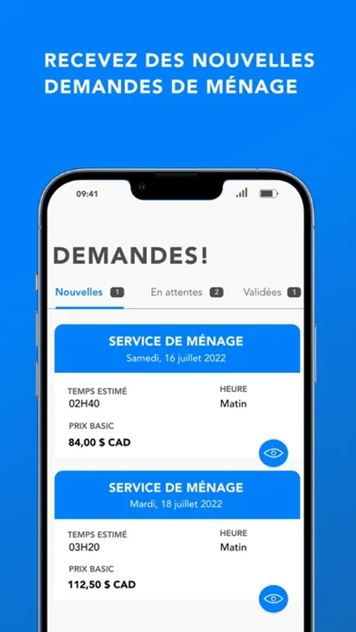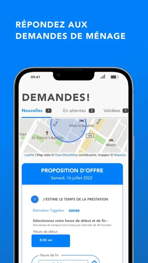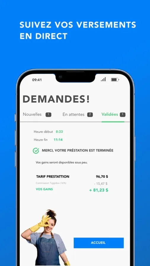 L'application vous permet de répondre à des demandes de ménages et effectuer la prestation chez le client.
