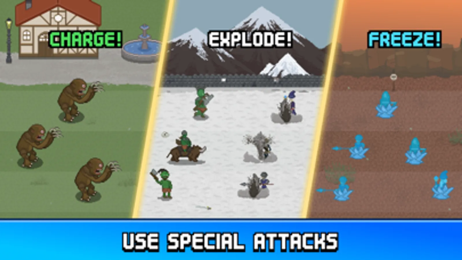 Unlock units across the Human, Orc and Elven kingdom. Recruit the best unit types to diversify your pixel army legion