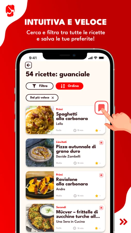 + Scuoti lo smartphone: la funzione ti farà scoprire la ricetta più goduriosa.