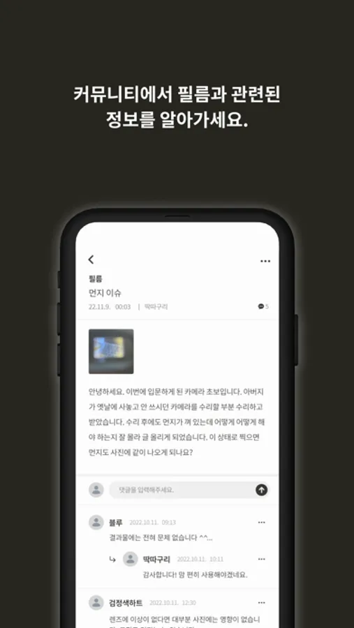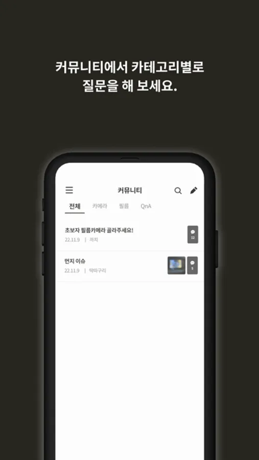 카메라, 필름, 질문 카테고리 분할을 활용하여 더 상세하게 다른 사람들과 이야기를 나눠 보세요.