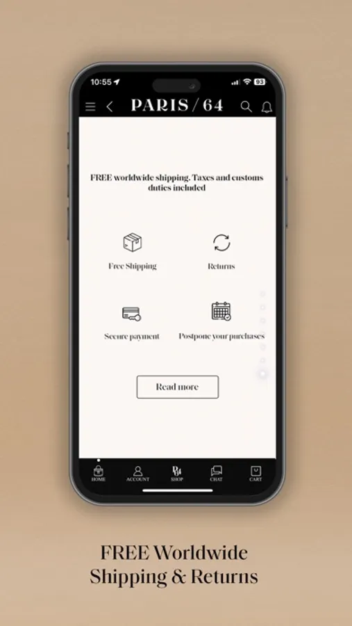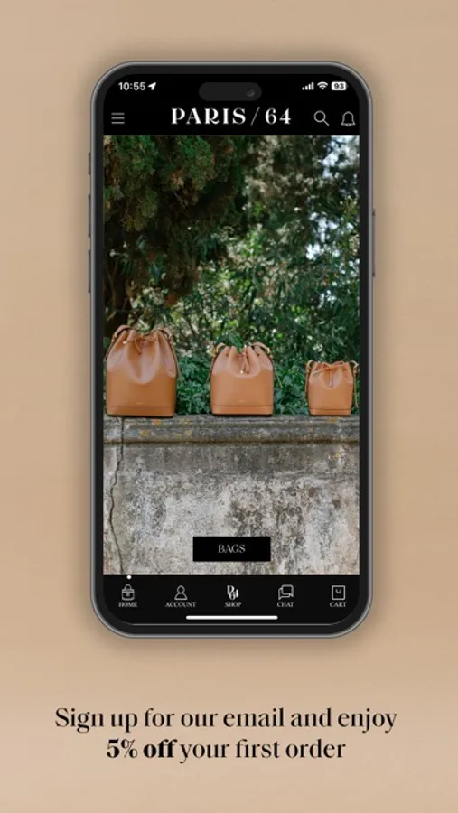 Our App is the best way to discover our collections in a dynamic and visual way. You will be able to enjoy some exclusive advantages and surprises. You will also be up to date with all our exclusive news. Make your purchases with PARIS/64 easy and quick.