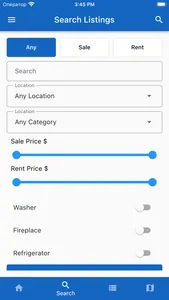 - Home Screen containing quick search, agents, featured listings, newest listings, categories, locations, news with filtering options