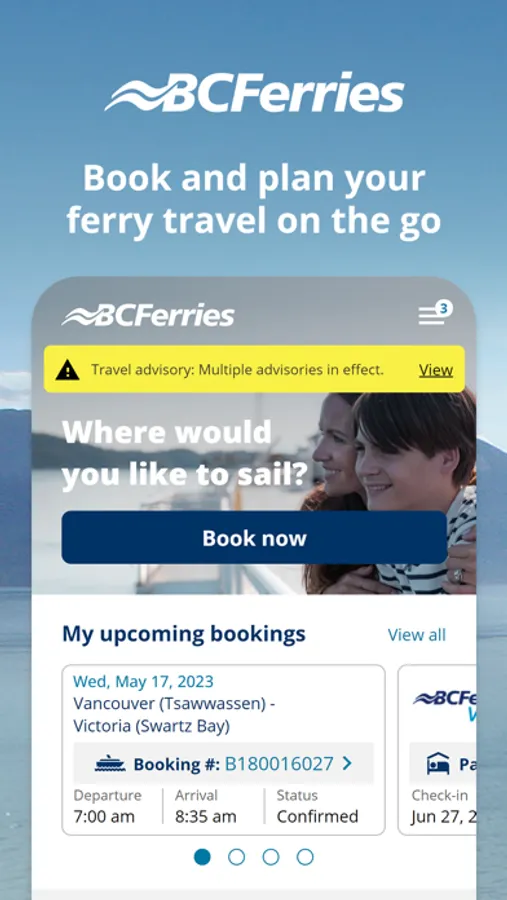 Introducing a new travel resource for planning and booking personal ferry travel. Book sailings, manage your trips, and check schedules and current conditions in a flash with the BC Ferries app.