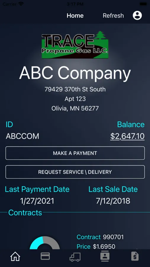 Information at your fingertips! This app gives you direct access to your account balance, location and contract information. It also gives you the ability to store and process payment and request service work and deliveries directly through the app.