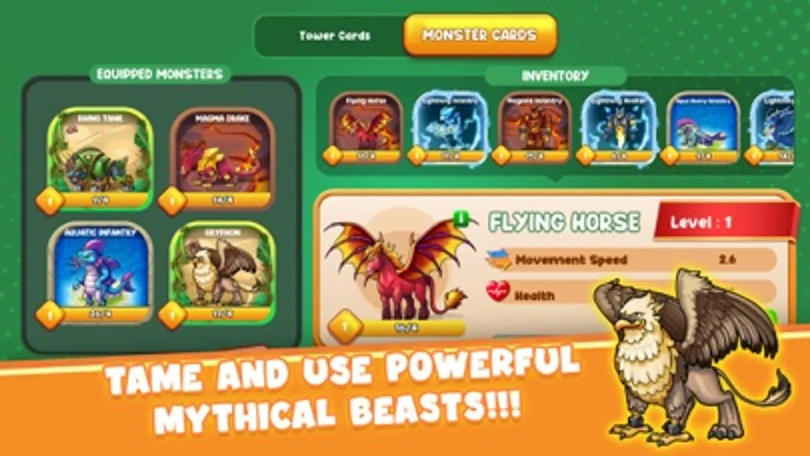 In Monsters Defense, your goal is to defend your base from waves of enemies using your collection of monsters and towers. As you play, you'll earn resources that you can use to upgrade your cards and make your defenses even stronger. With a wide range of monsters and towers to choose from, you'll have endless strategies at your disposal to take down your enemies.