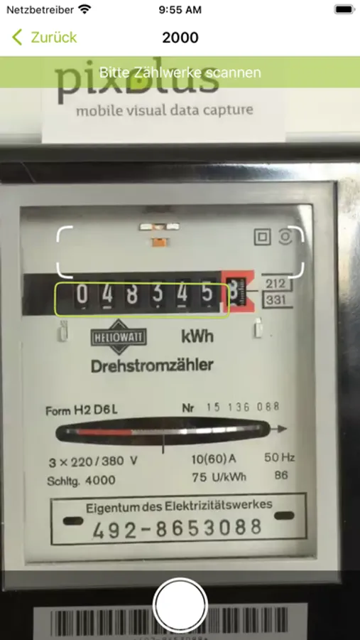 Die App erkennt mechanische Zählwerke (Ein- und Doppeltarif) sowie digitale LCD-Zähler. Wenn der Scanner nicht automatisch auslöst, tippen Sie auf den Auslöseknopf, um ein Foto zu machen und den Zählerstand manuell einzutragen. Gegenüber unsere alten App pixometer konnten wir die Erkennungsleistung deutlich verbessern.