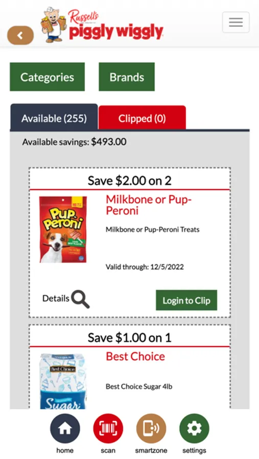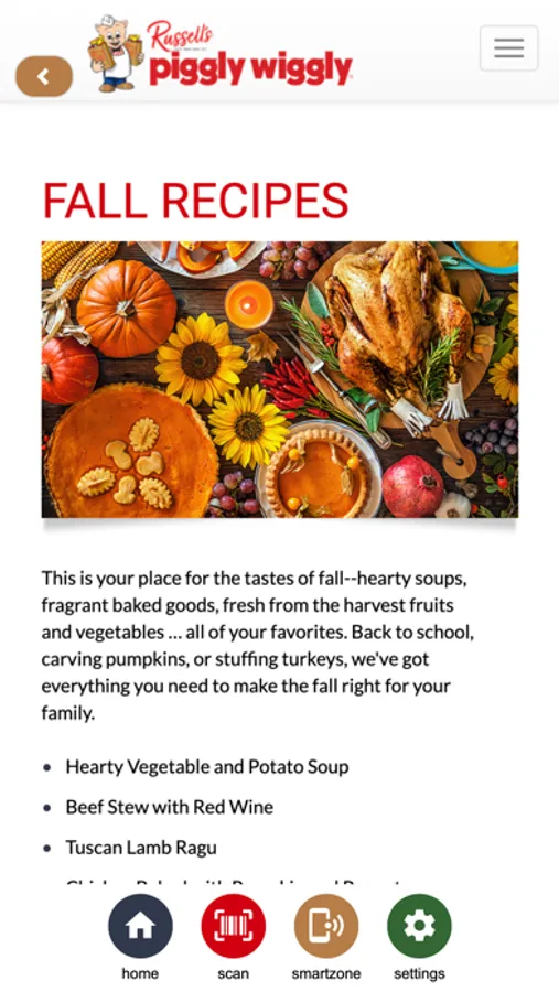 The Russell's Piggly Wiggly app enhances your grocery shopping experience. As you shop at a participating store, use this shopping companion app to help save you more money and receive special alerts. Along with being able to view store ads and coupons, the SmartZone feature allows the store to send deals and announcements to your phone. As you wind through the aisles of the store, be ready for offers to pop up on your phone.