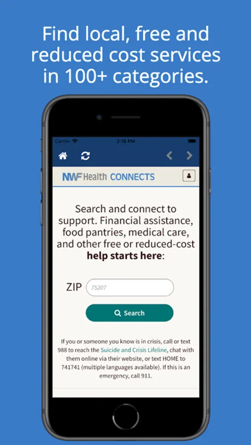 NWFHealth Connects is the one stop app to find available help and resources in your community for daycare, healthcare, mental health, substance abuse, food, employment, transportation, financial support, job training and more. Just enter a zip code, filter your need, and you’re done!