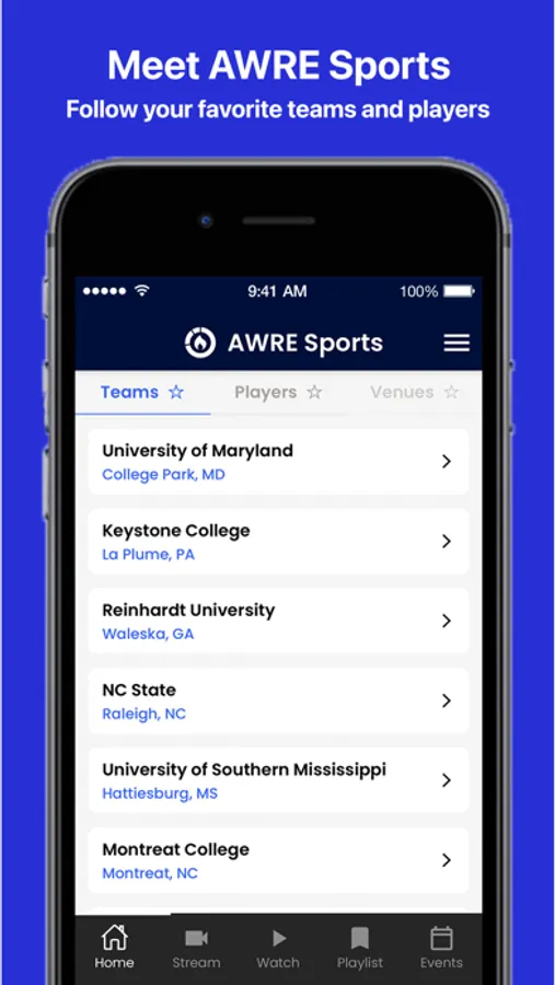 AWRE Sports provides live-streaming and auto clipping for performance analysis. Teams, Facilities and Individuals can use AWRE to capture and categorize their videos.
