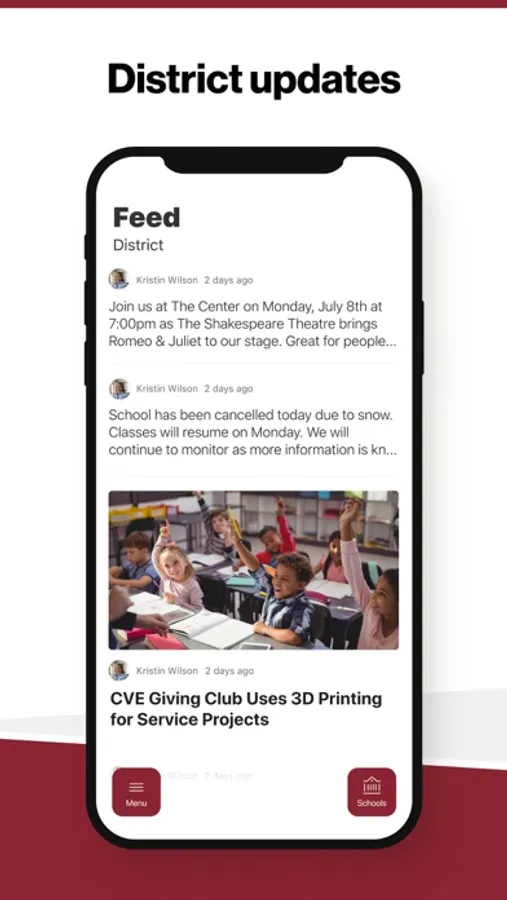 In the Live Feed is where you'll find updates from the administration about what's going on in the district right now. Whether that's celebrating a student's success, or reminding you about an upcoming deadline.