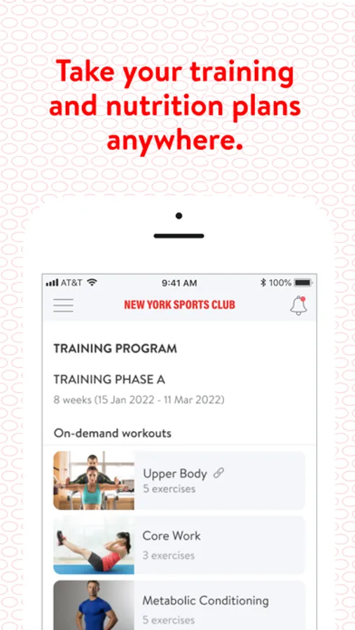 New features are coming soon! Track all aspects of your fitness journey and access a full suite of tools + services to help you achieve your goals. Socialize in community groups, join challenges, receive personal training programs, activity + nutrition tracking, and stay connected with 1 to 1 In-App messenger with trainers and instructors.