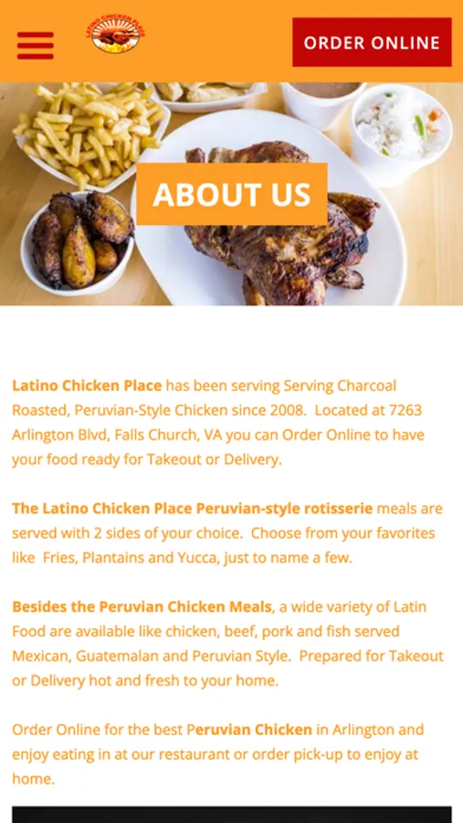 Latino Chicken Place has been serving Serving Charcoal Roasted, Peruvian-Style Chicken since 2008. Located at 7263 Arlington Blvd, Falls Church, VA you can Order Online to have your food ready for Takeout or Delivery.