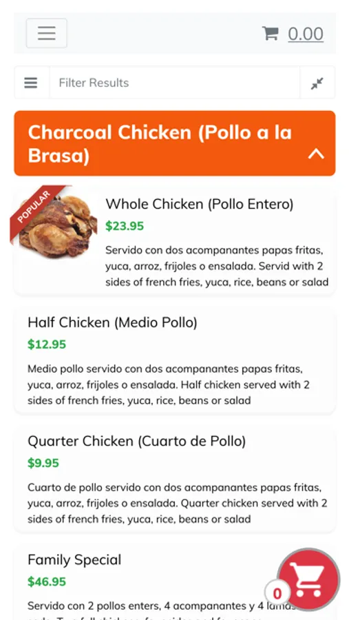 Besides the Peruvian Chicken Meals, a wide variety of Latin Food are available like chicken, beef, pork and fish served Mexican, Guatemalan and Peruvian Style. Prepared for Takeout or Delivery hot and fresh to your home.