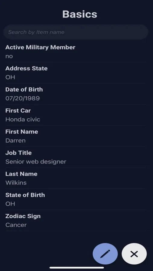 For each person you add, you can store information, such as:
