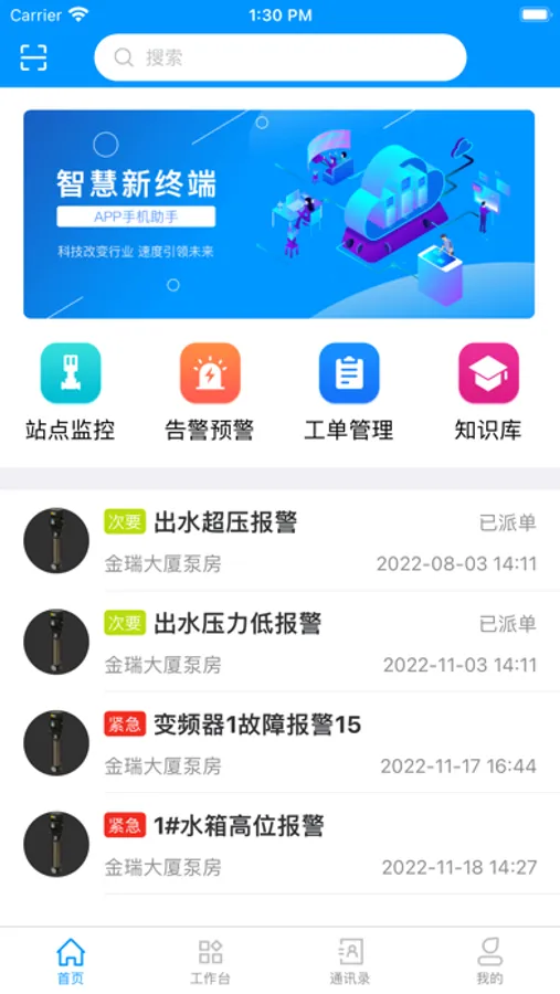 手机智慧助手汇集智慧水务各子系统中的核心模块,对决策人员,运维人员,监控人员,巡检人员,维修人员,质检人员,资产管理人员,消防安全人员,管理人员等多用户角色区别开放管理功能、权限。面对不同专业的用户都能提供简单且智慧的交互,让工作效率大幅提升,移动办公,设备/视频控制,人员考核,数据分析等都可掌上操作。