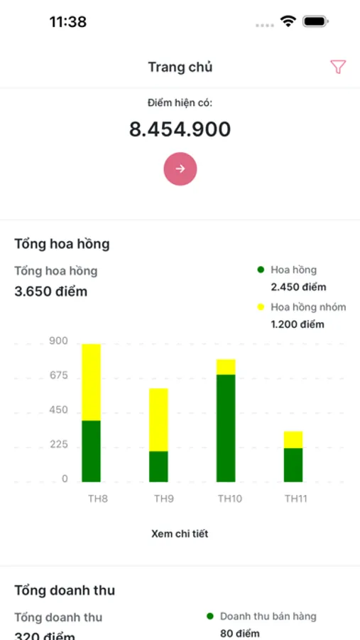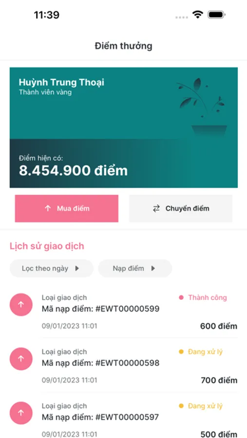- Quản lý thành viên, điểm thưởng, đơn hàng, khoá học của cá nhân.