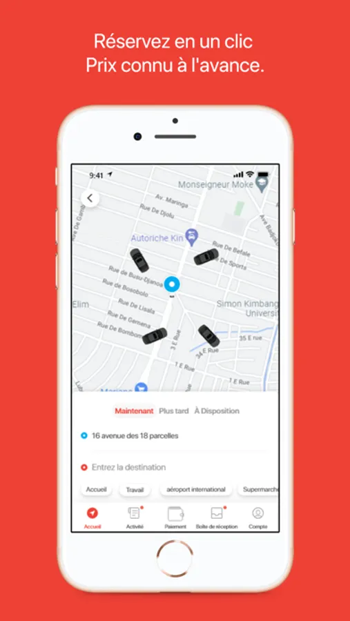 • Saisissez vos points de départ et d’arrivée, choisissez votre type de véhicule et estimez le prix de votre course.