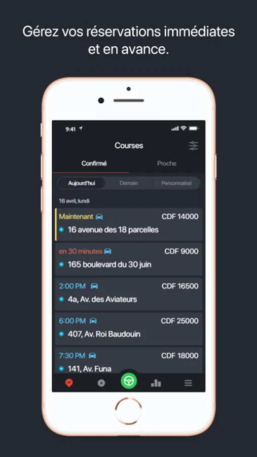 - D’un service de navigation précis pour vous rendre au point de départ et conduire votre client