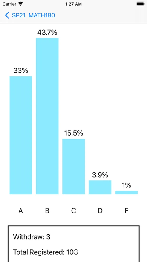 This app shows UIC grade distribution. You can search the percentage of the grade for each course