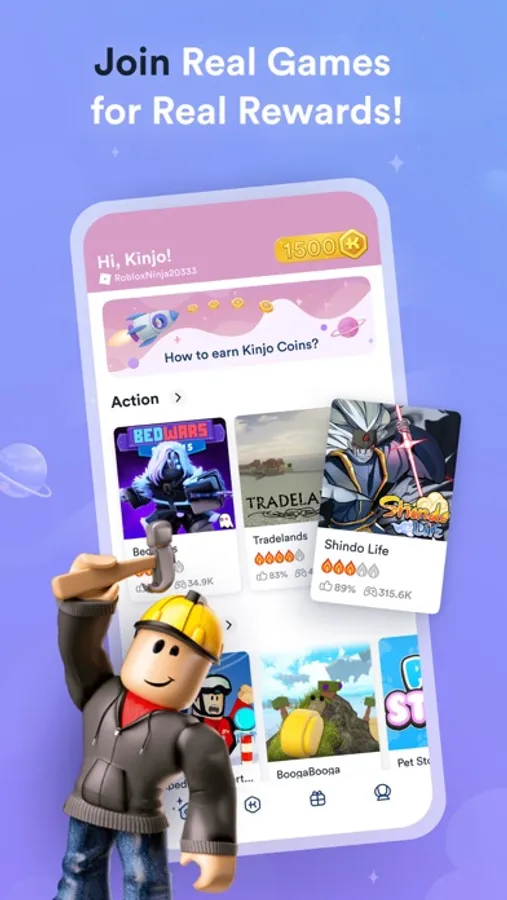 - Get real-world rewards for playing games on Kinjo