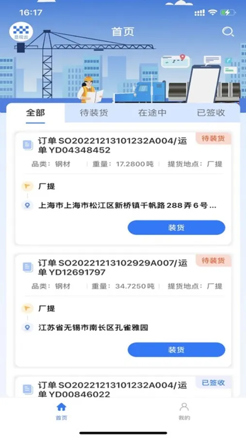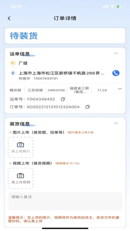 货运司机通过app进行装货信息提交,同时对在途中的运单进行物流跟踪,到达目的地之后可通过单据和人脸识别两种方式进行货品签收。