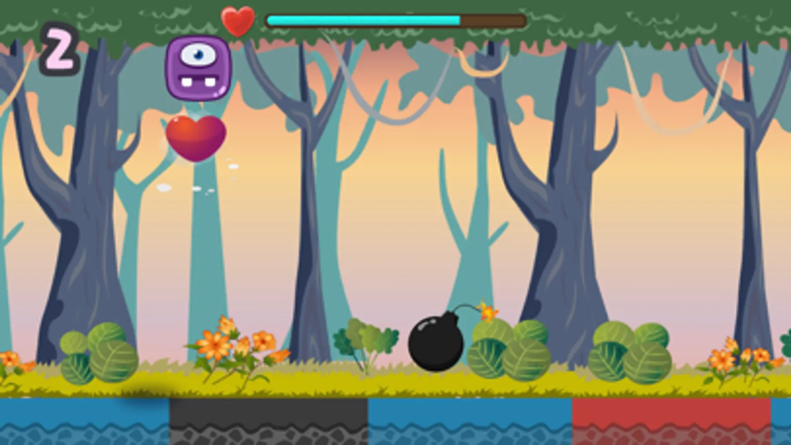 Monster Bounce is a colorful high score game. The monster will change his color according to the star he ate. If the monster hit the land with the same with his color, he will gain his health score, but if he hit the incorrect color, the game will over.