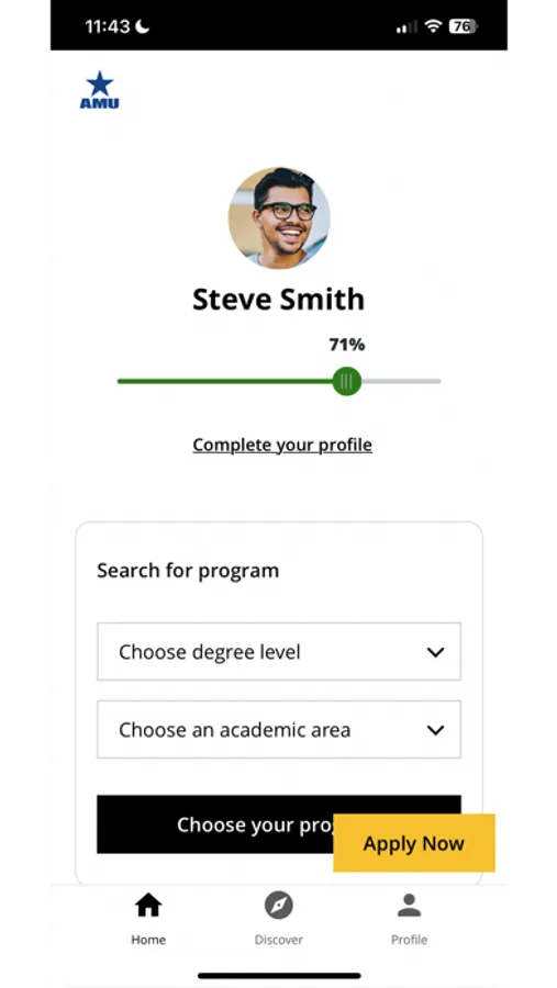 myAMU puts American Military University in the palm of your hand. The app is a direct route to our University, helping you explore our university and its programs. While our roots are in the military, we are open to all who seek an affordable, flexible learning choice in higher education. Complete your application right through myAMU and get started.