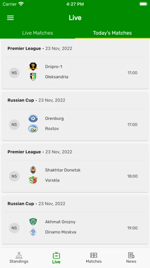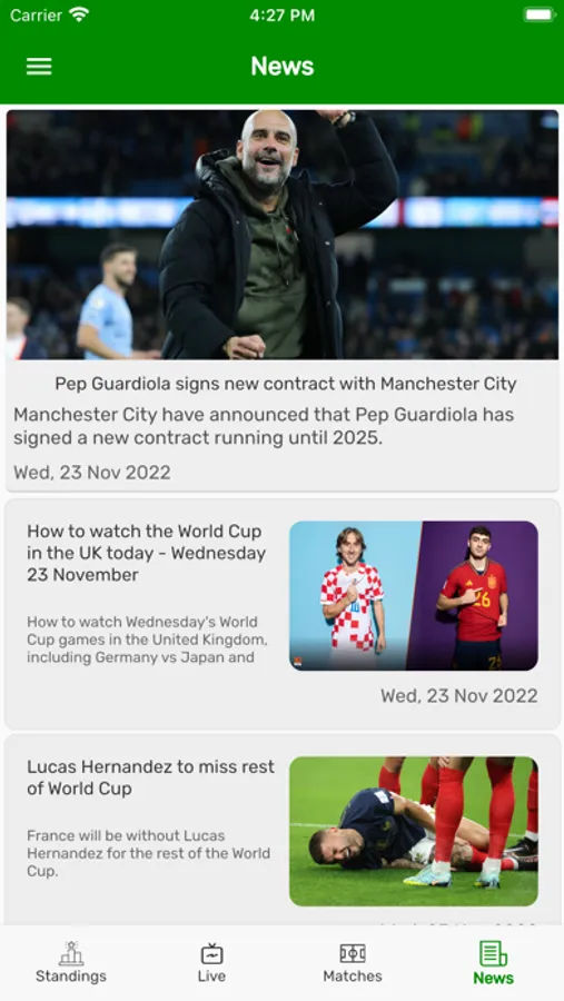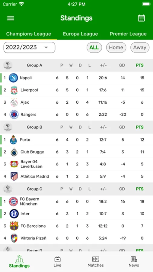 • Get football Standings