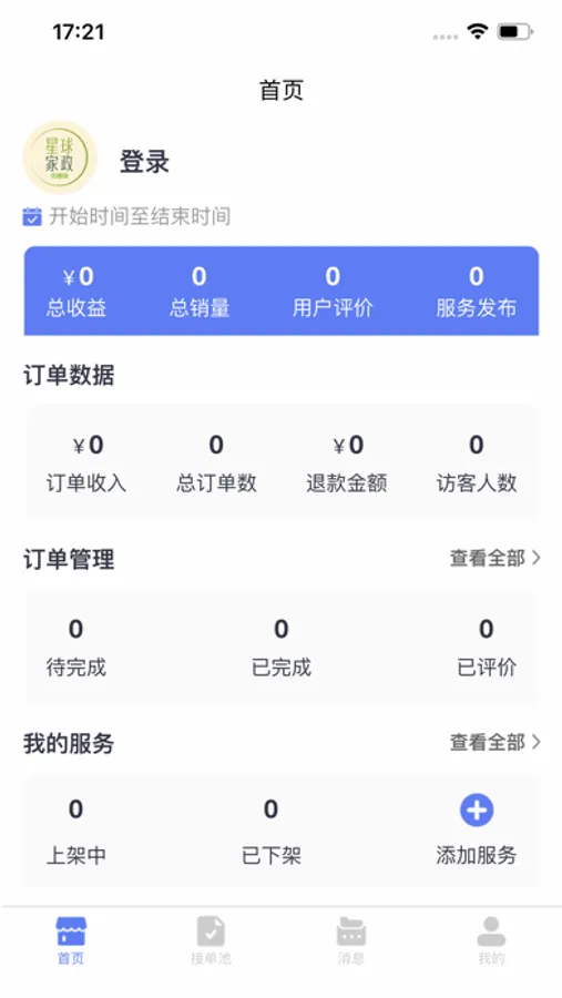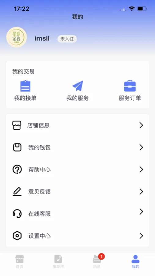 星球家政师傅端,提供个人、企业入驻星球家政平台,集发布任务、在线接单、账户流水服务
