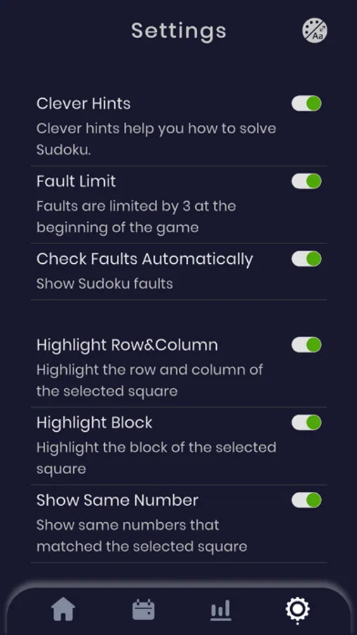 - Highly customizable - Ability to change the color of game (theme) and font sizes