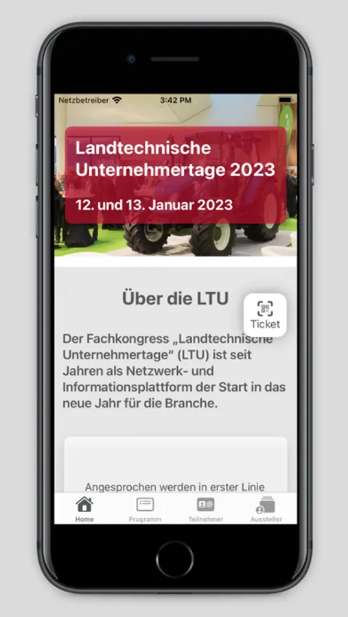 Die LTU App bietet Ihnen umfangreiche Features wie mobiles E-Ticket, Teilnehmerlisten, alle Infos zu den Ausstellern und Rahmenprogramm. Ihr Feedback zur Veranstaltung können Sie in diesem Jahr ebenfalls über den digitalen Fragebogen in der App an uns weitergeben. Dieser steht ab Donnerstag Mittag zur Verfügung.