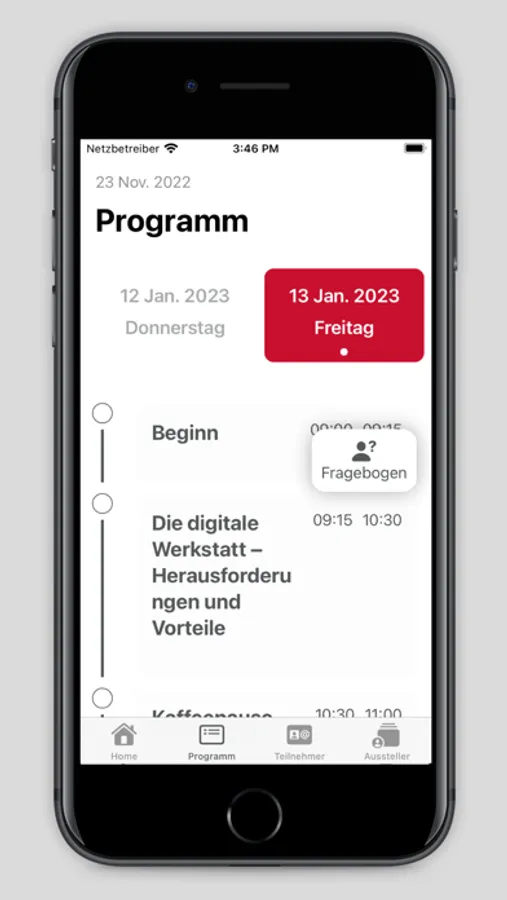 Bitte beachten Sie das alle Infos zu den Teilnehmern sowie der Feedback-Fragebogen erstmals ausschließlich über die LTU App verfügbar sind.