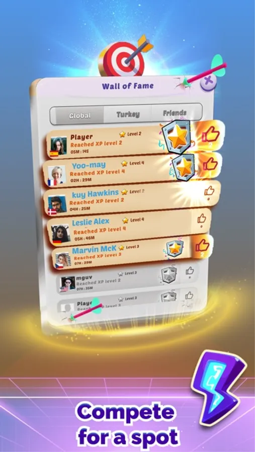 * Earn your place on the Wall of Fame by competing with other players.