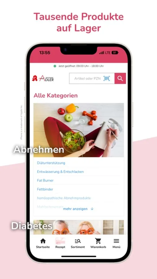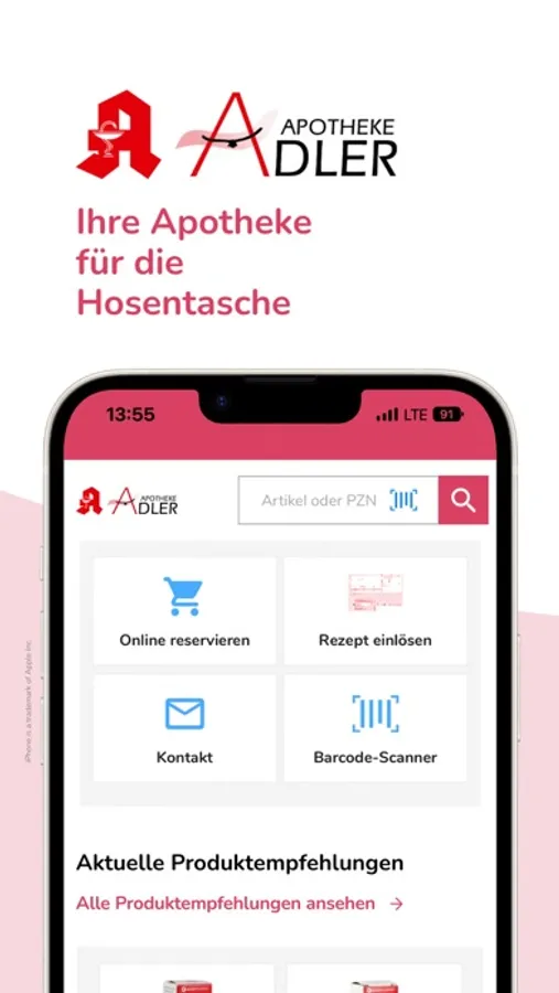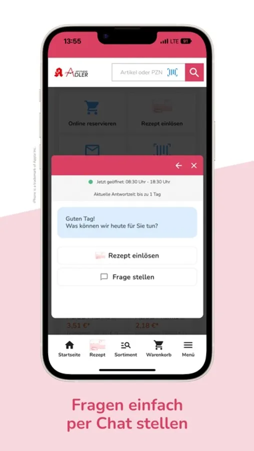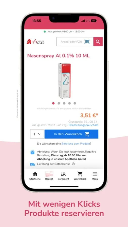 Die ADLER-APOTHEKE für die Hosentasche: (E-)Rezepte und Medikamente online.