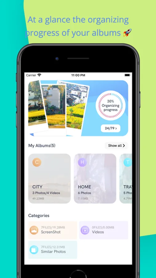 Unorganized progress view: see at a glance the photos waiting to be sorted All albums are under control