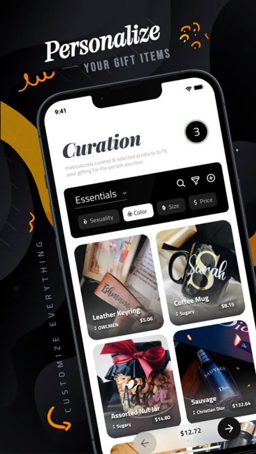 - We curate gifts based on Person's Personal Taste, Brand Preferences, Interests & Color Choices.