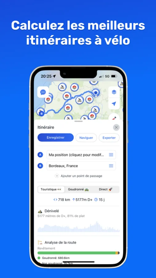 Toutes les infos en temps réel: le dénivelé, le revêtement de la route, la fréquentation des voitures.
