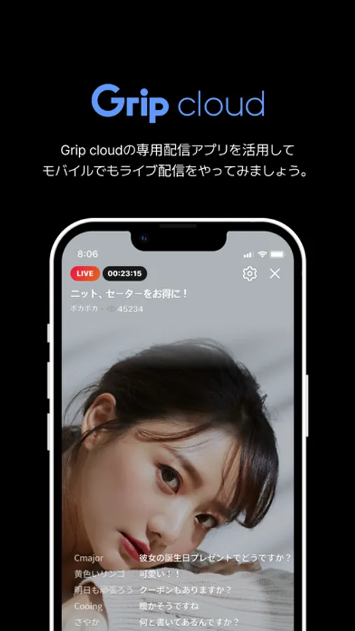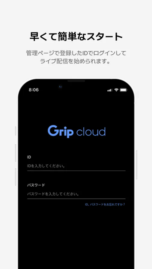 *配信前にGrip cloudの導入が必要です。導入についてはGrip cloudのホームページからお問い合わせください。