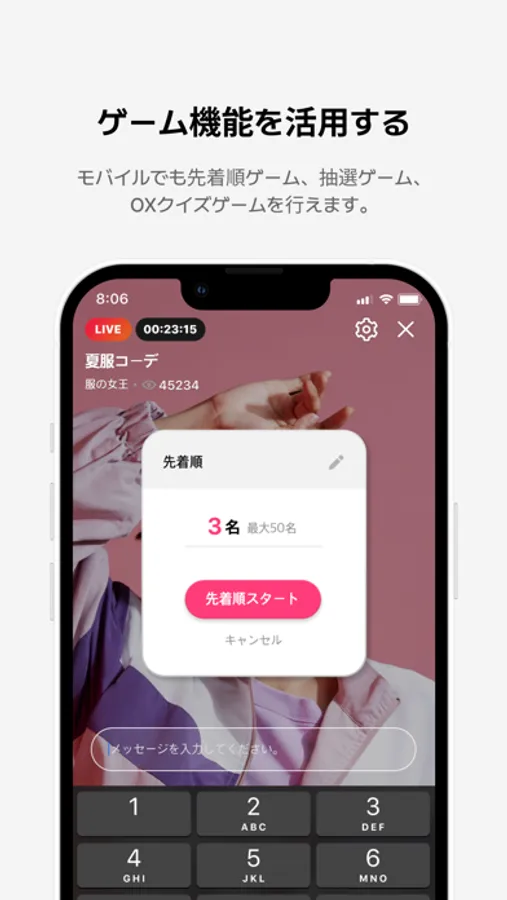 抽選ゲーム、先着順ゲーム, OXクイズゲームが活用できます。