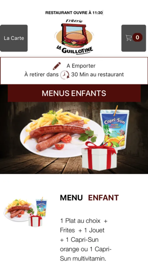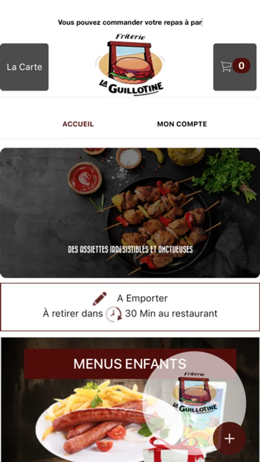 L'application Friterie la Guillotine vous permet de commander en ligne ou par téléphone via votre application. Vous pouvez consulter notre carte et choisir vos produits.